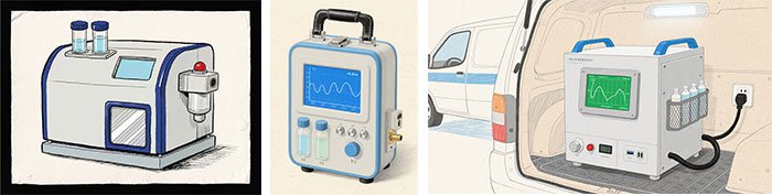 一體式、便攜式、車載式的部分都放一起,圖片放一排三張小圖片。內(nèi)容如下:除了經(jīng)典的分離式模塊化HPLC之外,還有一體式、便攜式、車載式等多種HPLC的形式,分別適用于實驗室空間極其緊湊、需要現(xiàn)場測試等應用場景。當然,一體式、便攜式這種HPLC形式為了實現(xiàn)更小的體積和便攜需求,通常會通過集成化設計、固定配置、壓縮儀器功能等方式來節(jié)省空間,同樣也就帶來了不夠靈活、功能受限、性能受限等一系列弊端。您可以根據(jù)實際使用需要來選擇合適的儀器。