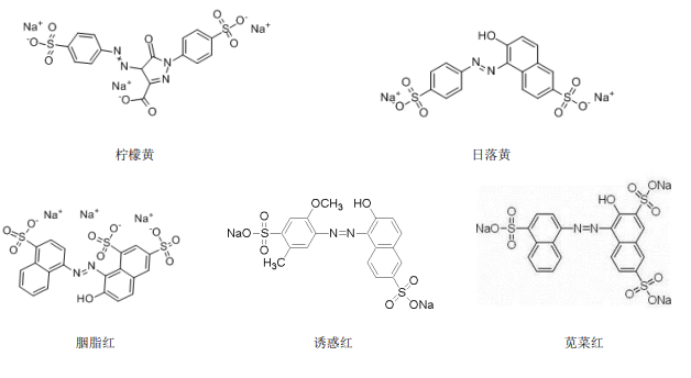 人工合成著色劑主要以苯、甲苯等化工產(chǎn)品為原料,經(jīng)過磺化、硝化、鹵化、偶氮化等一系列有機反應(yīng)而制得的人工色素。合成著色劑能有效改善食品色澤,被廣泛應(yīng)用于食品加工中,中國食品添加劑使用衛(wèi)生標準列入的合成色素主要有胭脂紅、莧菜紅、日落黃、赤蘚紅、檸檬黃、新紅、靛藍、亮藍等等。