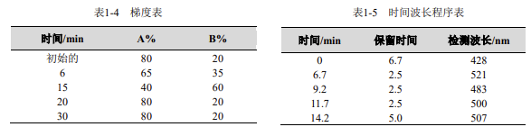 流動相:A:0.02mol/L 乙酸銨溶液,B: 甲醇(梯度洗脫)
