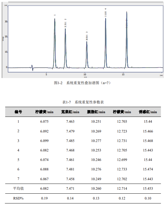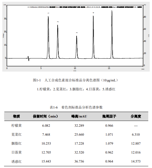 1.4.1 著色劑標準品分析結(jié)果