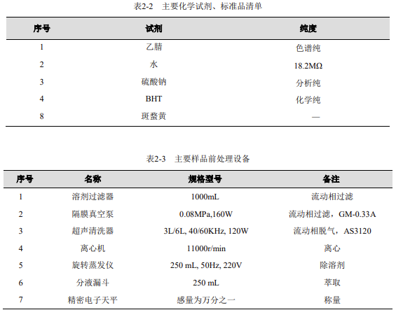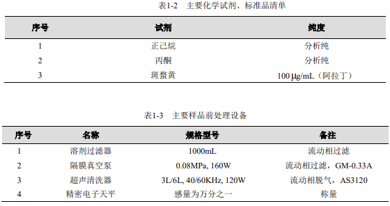 實驗過程中其它玻璃器皿還包括容量瓶 (100mL、50mL、25mL、10mL)、移液槍 (0~1000μL,0~5000μL)、移液槍槍頭 (1mL,5mL)、一次性 PVC 手套、一次性口罩、進(jìn)樣針、濾膜等若干。