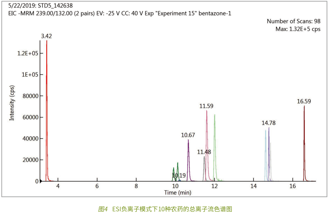 隨著現(xiàn)代農(nóng)業(yè)的發(fā)展,農(nóng)藥使用越來越普遍和頻繁。帶來高產(chǎn)的農(nóng)產(chǎn)品的同時,也給環(huán)境和人類的健康帶來負面的影響。由于抗藥性、農(nóng)藥價格和環(huán)保健康等因素,農(nóng)藥的使用越來越呈現(xiàn)多種農(nóng)藥聯(lián)合使用,不同季節(jié)輪換使用等新的方式,因此農(nóng)藥檢測就不僅只是局限于某種或者某類化合物,而是更廣泛的篩查各類農(nóng)藥殘留的可能性。在食品安全會議的議題上,農(nóng)藥殘留往往是大家先關注的,某些高附加值的經(jīng)濟作物如茶類更是需要嚴格監(jiān)控農(nóng)藥殘留的殘留狀況。近年,消費者越來越重視環(huán)境保護,消費者轉(zhuǎn)向關注農(nóng)藥使用與殘留量,無農(nóng)藥殘留的有機農(nóng)產(chǎn)品更是受到消費者的青睞。因此法規(guī)日趨嚴格并注重多種農(nóng)藥殘留的同時檢測。本文參照臺灣食品藥物管理署 TFDA 公告之食品中殘留農(nóng)藥檢驗方法 — 多重殘留分析方法 (五) 建立多重殘留農(nóng)藥之檢測方法,EClassical 3200L-MS2 Vertical 9100 液相質(zhì)譜聯(lián)用系統(tǒng)應用于農(nóng)產(chǎn)品中 203 種農(nóng)藥多殘留正負模式同時檢測 LC-MS/MS 分析方法。