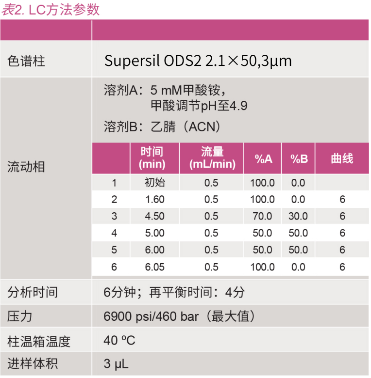 對(duì)于所有樣品的稀釋,使用 5-mM 甲酸銨,并用 10% 甲酸調(diào)整 pH 為 4.9。?