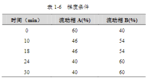 流動相:A: 水,B: 乙腈,梯度洗脫