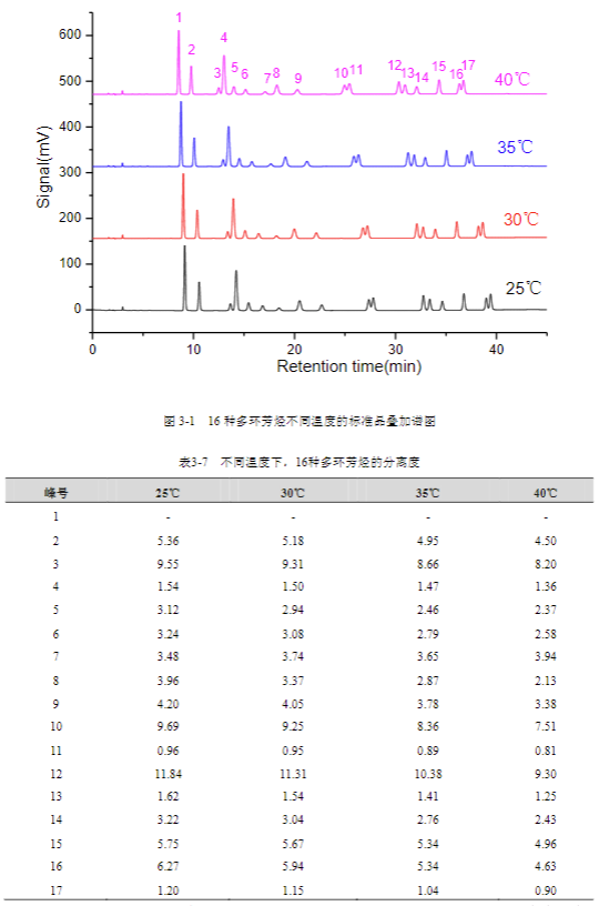 3.4.1 不同溫度分離色譜圖