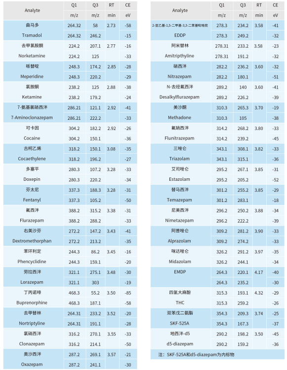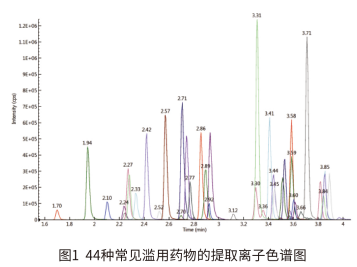 MS2 Vertical 9100 建立了快速、高靈敏度和可靠的 LC-MS/MS 實(shí)驗(yàn)方法測(cè)定常見 44 種濫用藥物的含量。實(shí)驗(yàn)結(jié)果表明,本方法具有分析速度快、線性范圍寬和靈敏度高等特點(diǎn),適用于司法刑偵領(lǐng)域中常見濫用藥物的定性定量分析。