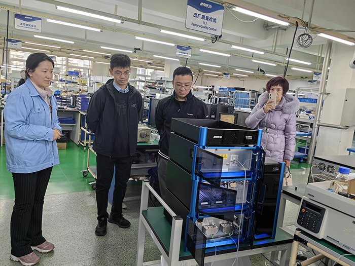 隨后,專家一行參觀了EClassical 3200L系列超高效液相色譜儀。在深入了解產(chǎn)品技術參數(shù)與性能表現(xiàn)后,專家們再次對我司產(chǎn)品比肩進口設備的品質(zhì)表示認可。