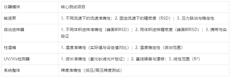 梯度準確性:通過特定測試(如低壓梯度或高壓梯度測試)驗證梯度比例的實際值與設(shè)定值的一致性。