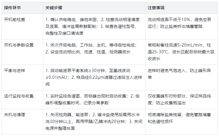 制備液相色譜儀的操作核心在于“精準(zhǔn)控制”與“循序漸進(jìn)”,每一步都直接影響分離效果和設(shè)備安全,新手尤其要牢記細(xì)節(jié)。