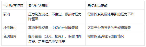 要是發(fā)現(xiàn)壓力波動(dòng)、基線有噪音,或者保留時(shí)間不穩(wěn)定,先別急著處理,得先搞清楚氣泡在哪個(gè)位置: