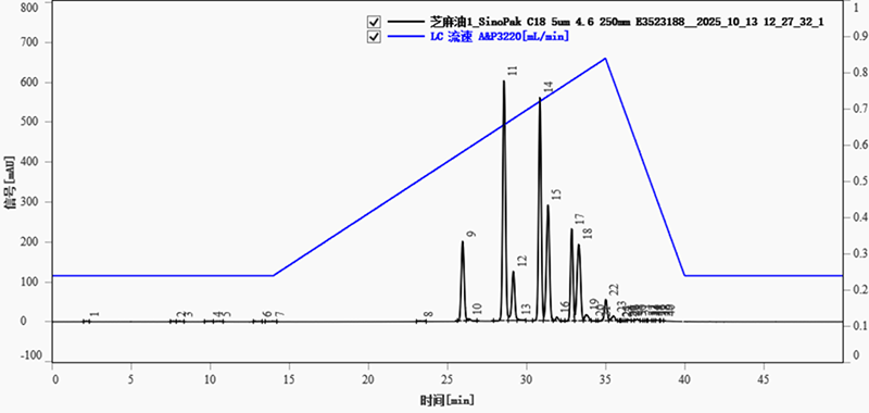 芝麻油作為一種常見的食用植物油和藥物輔料,其質量和成分分析尤為重要。甘油三酯是芝麻油的主要成分,其組成直接影響油的營養(yǎng)價值、穩(wěn)定性和應用性能。本文將介紹如何使用高效液相色譜法結合蒸發(fā)光散射檢測器(HPLC-ELSD)對芝麻油中的甘油三酯進行分析,并對比國家標準GB/T 44614-2024《糧油檢驗,植物油中甘油三酯組成的測定,高效液相色譜法》與2025版《中國藥典》中芝麻油標準的分析方法。