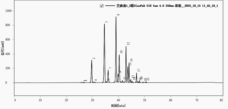 圖1. 根據GB/T 44614-2024方法分析芝麻油樣品的色譜圖