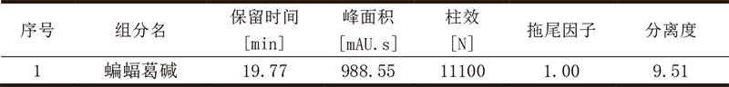 取蝙蝠葛堿對照品適量,精密稱定,置棕色量瓶中,加甲醇制成每1mL含蝙蝠葛堿0.13mg 的溶液,即得。(臨用前新制,避光保存。)